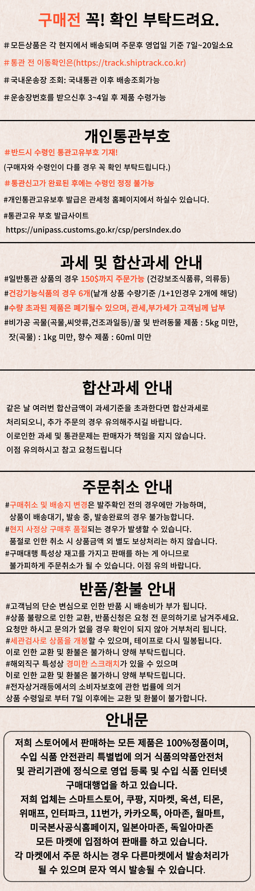 - 해외구매대행 상품은 국내 A/S가 불가한 경우가 많으며, 브랜드/판매처 정책에 따릅니다.