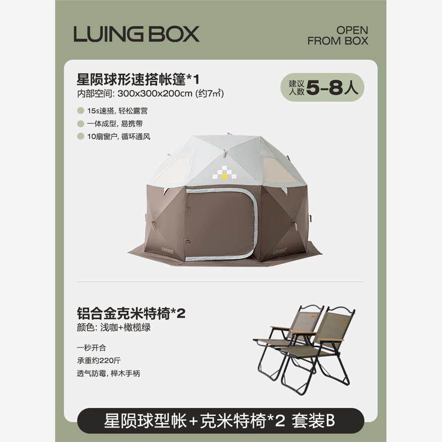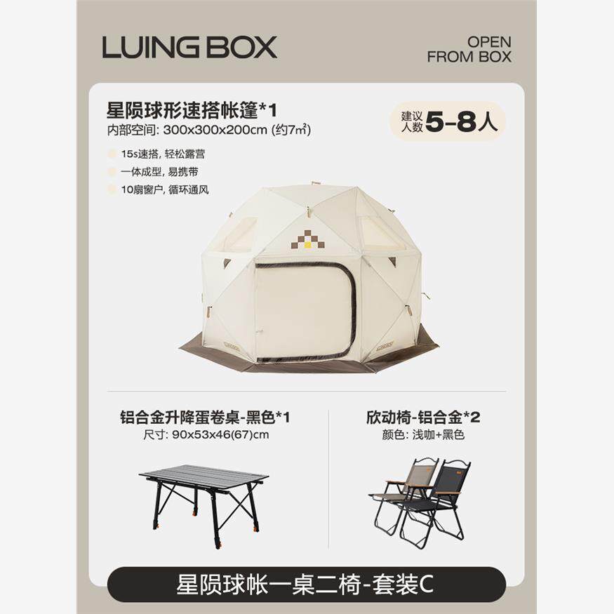| 한 테이블 두 의자【알루미늄 합금】세트 +【코코 달걀 우유】구형 속개 텐트 |