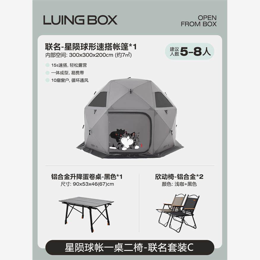 | 한 테이블 두 의자【알루미늄 합금】세트 +【콜라보 제품 코코 달걀 우유】구형 속개 텐트 |