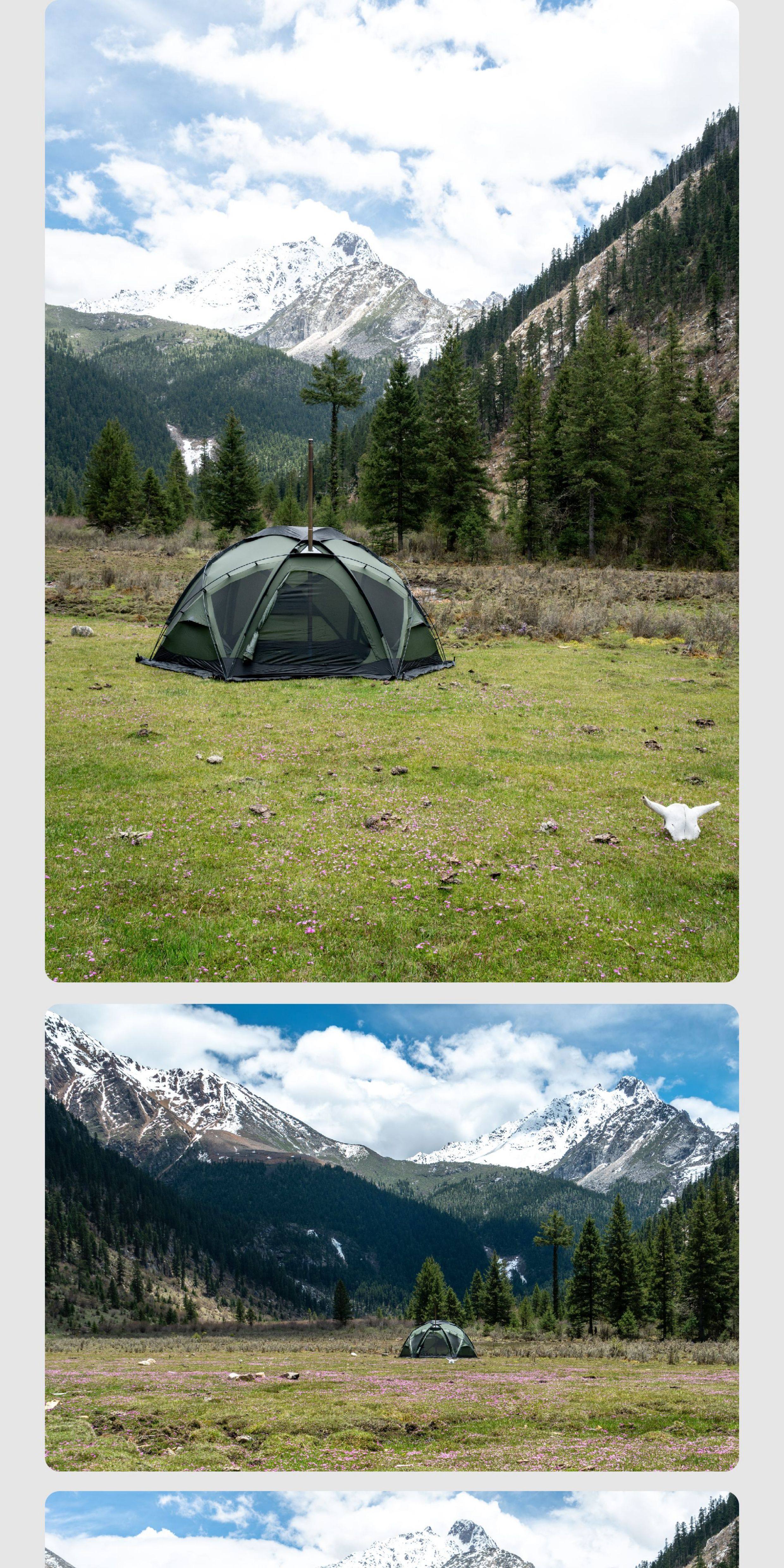 | 군녹색 - 외부 텐트 외부 텐트, 텐트 폴, 바닥 말뚝, 풍선 줄 포함 |